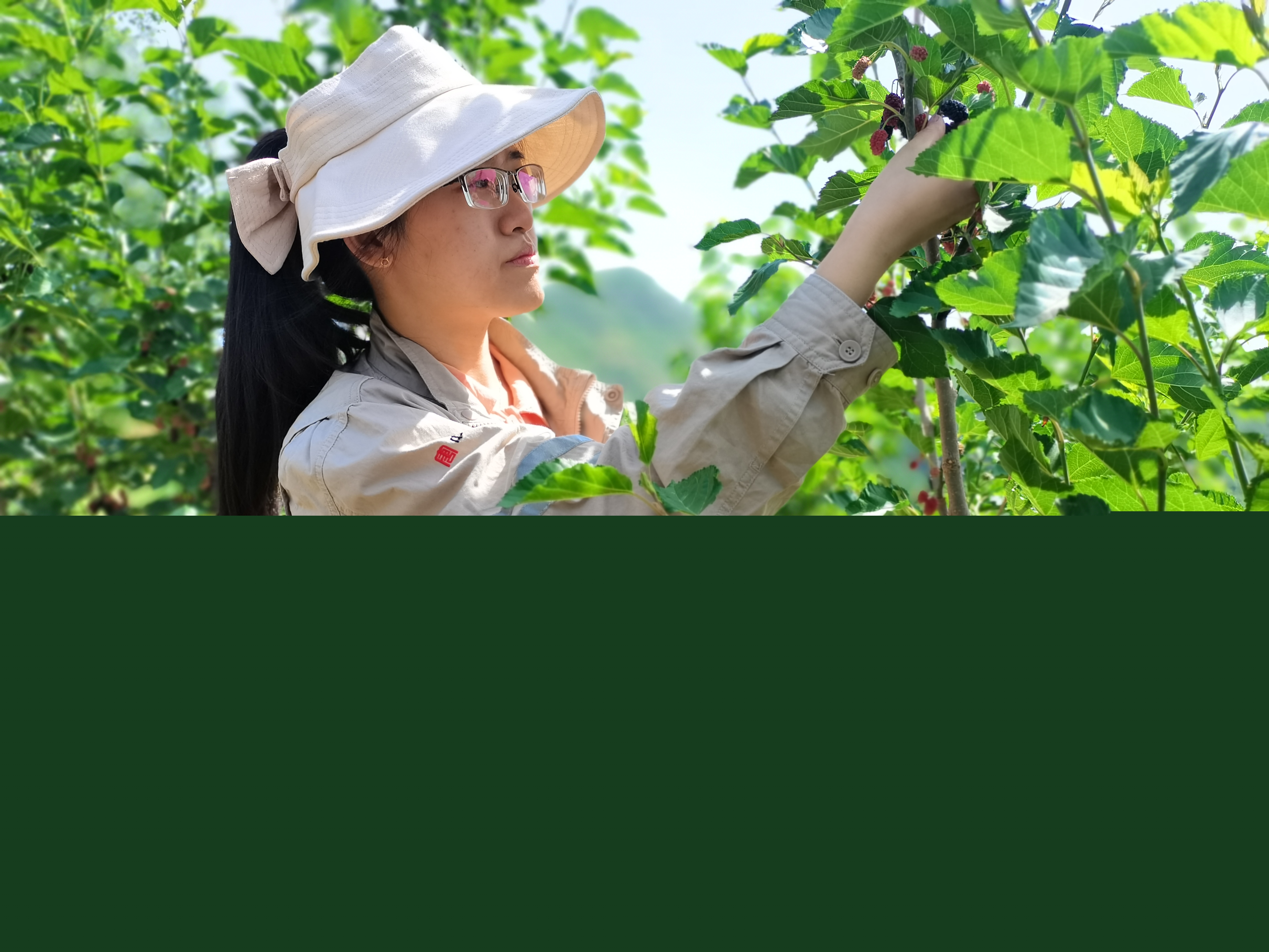 走進(jìn)桑葚園,只見桑樹成片,綠意蔥蔥,顆顆色澤飽滿的桑果掛滿枝頭,隱隱約約的香甜氣味,四處彌漫,醉人心脾。油亮黝黑、紅的發(fā)紫的桑葚藏匿在樹枝間,好似含羞的姑娘。職工們手提著籃子,穿梭于園中,圍著桑樹東瞅瞅西看看,都想找到最大最紅最紫的桑葚。