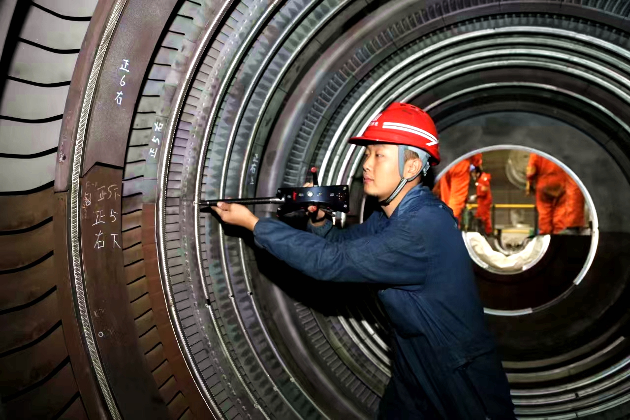 隨著高中壓缸轉(zhuǎn)子被緩緩?fù)迫刖S修車間,工程師們?nèi)缤艿耐饪漆t(yī)生,反復(fù)測量葉片弧度,確保能承受每分鐘3000轉(zhuǎn)的極限運轉(zhuǎn)。然而,236個定位銷尺寸偏差的問題如攔路虎橫亙在前。按常規(guī)流程,重加工需72小時,但工期不等人。王文麟直接搬來折疊椅,在機床旁和工人師傅輪班值守。金屬切削的火花在他工裝上濺起星點灼痕,16個小時后,當(dāng)最后一個定位銷通過精度檢測,他布滿血絲的眼中終于溢出如釋重負的笑意。