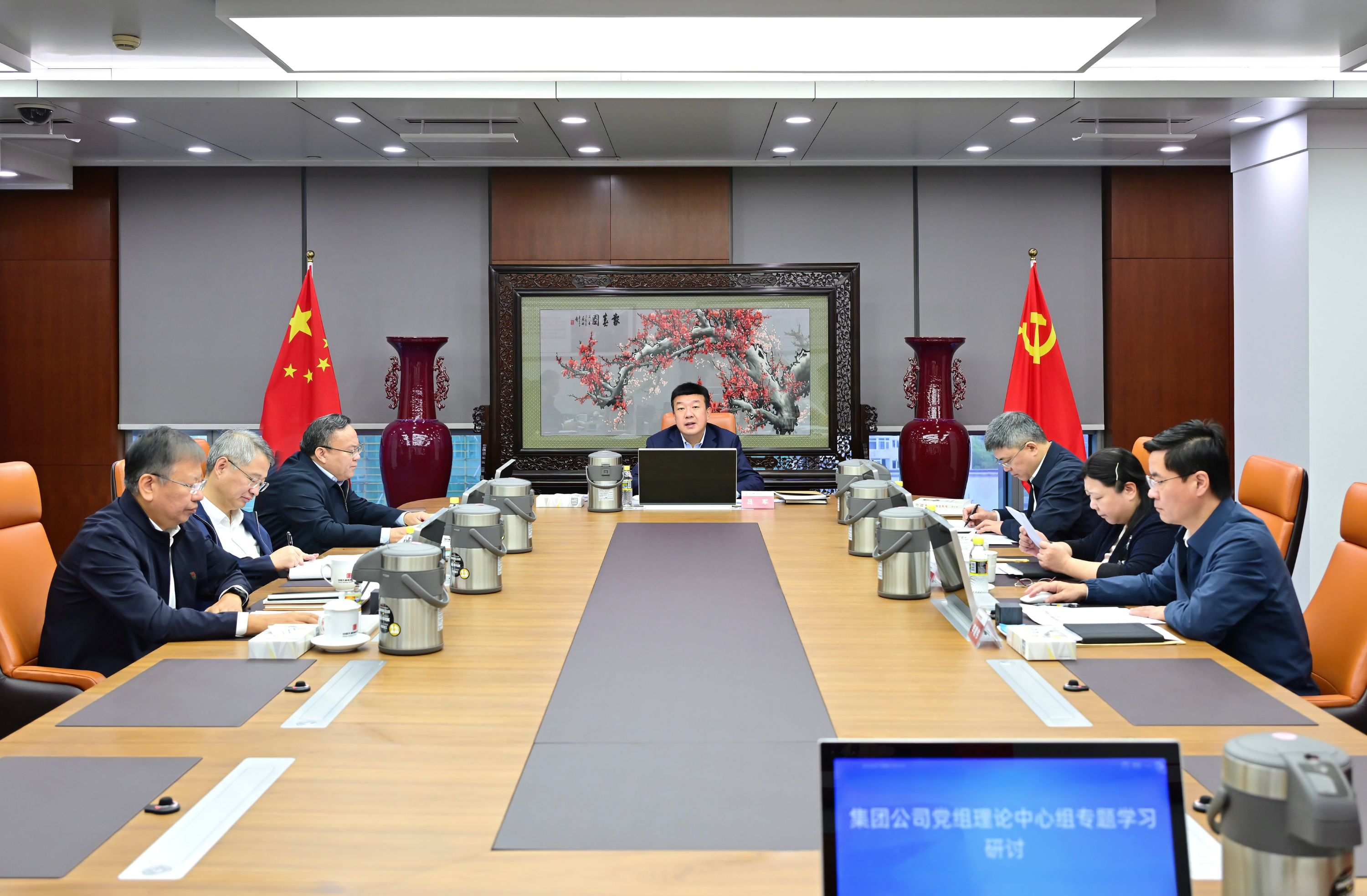集團(tuán)公司黨組書記、董事長呂軍主持學(xué)習(xí)并講話,集團(tuán)公司領(lǐng)導(dǎo)李向良、余波、王瑛、陶云鵬、李建偉、王海騰參加專題學(xué)習(xí)研討。