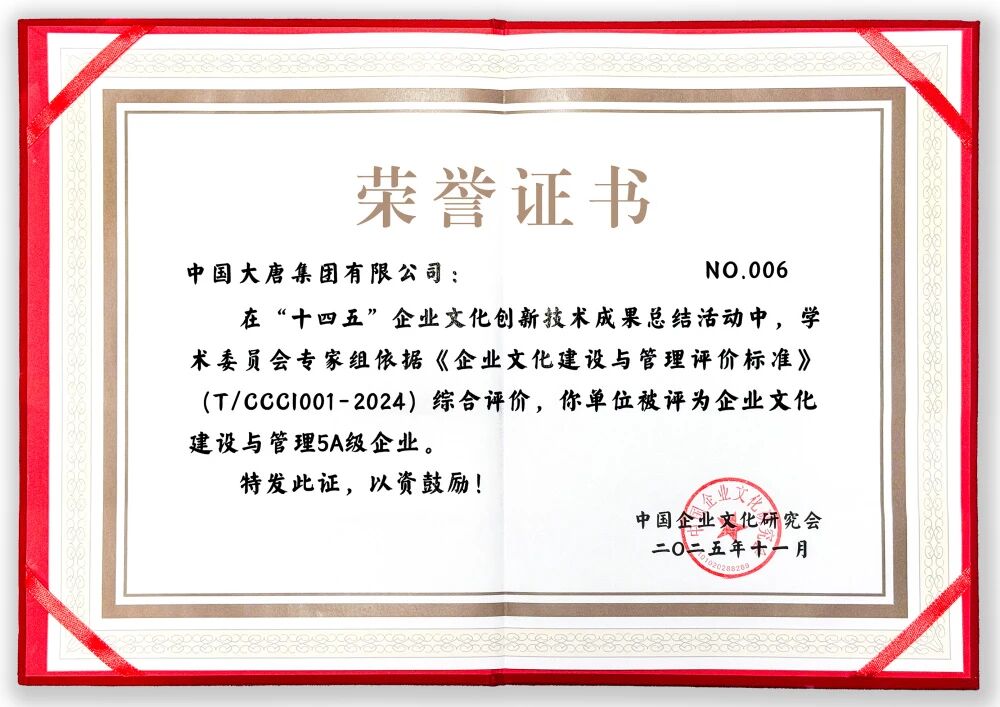 中國大唐獲評企業(yè)文化建設(shè)與管理5A級企業(yè),大唐國際發(fā)電股份有限公司和中國大唐集團(tuán)海外投資有限公司獲評4A級企業(yè)。