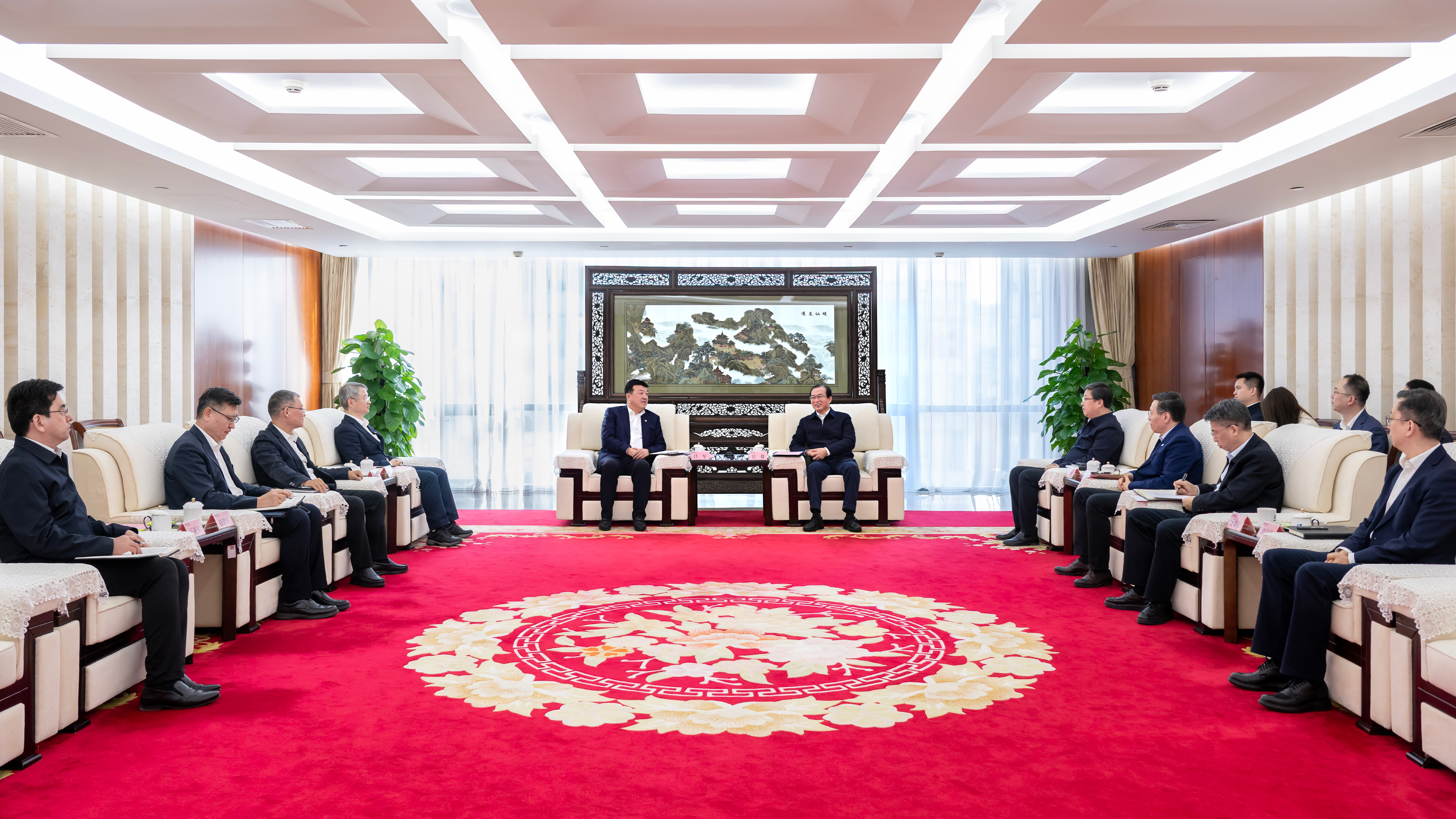 中國大唐黨組成員、總會計師陶云鵬,黨組成員、副總經(jīng)理茍偉;中國華電副總經(jīng)理、黨組成員趙曉東,總會計師、黨組成員曹海東參加會談。