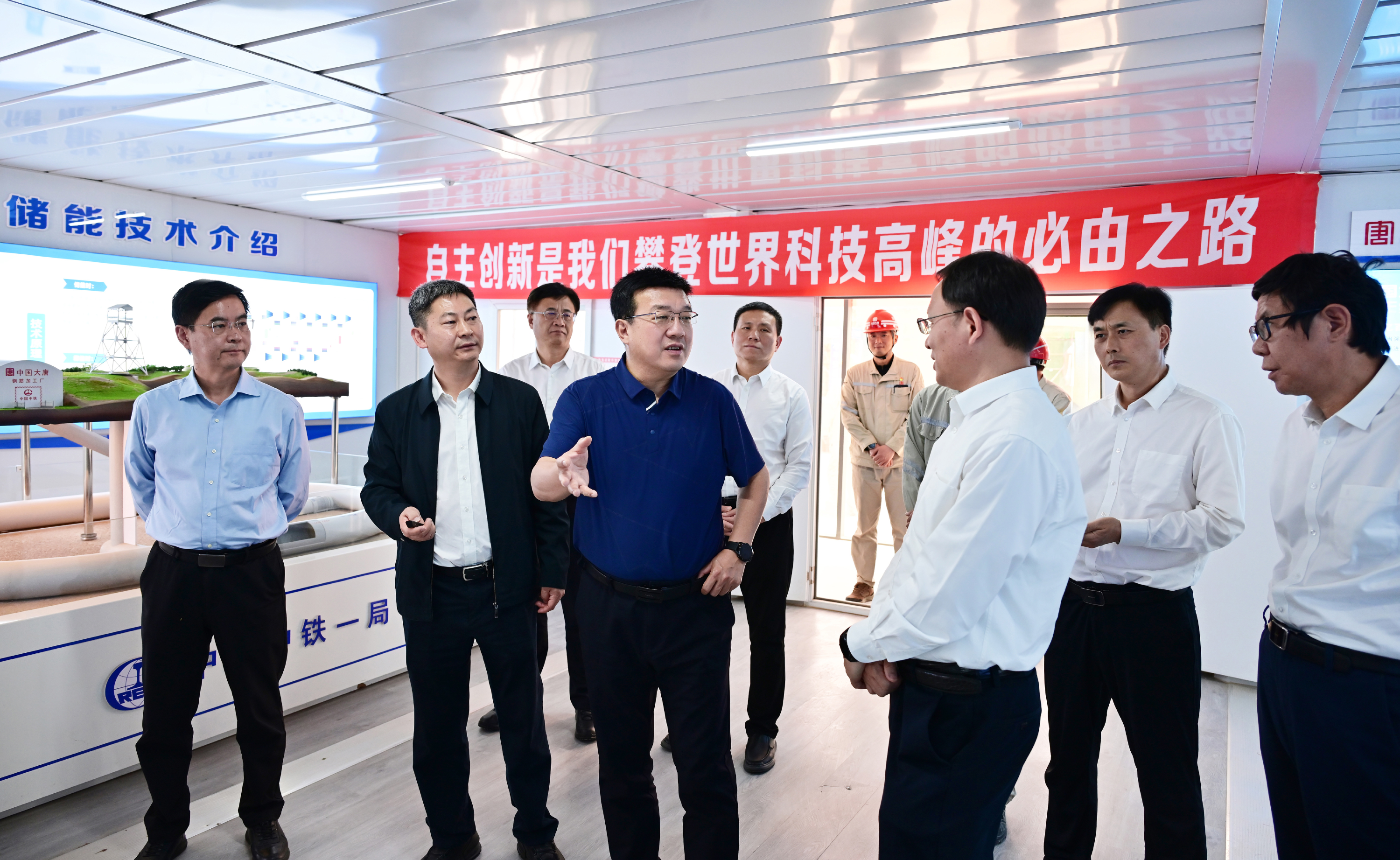 呂軍一行首先來到大唐寧夏中寧國際首套百兆瓦級全人工地下儲氣庫壓縮空氣儲能項目建設現(xiàn)場,深入項目主廠房、信息化調(diào)度中心以及地下儲氣庫硐口,聽取項目介紹,詳細了解壓縮空氣儲能技術、施工進度、技術創(chuàng)新等情況。
