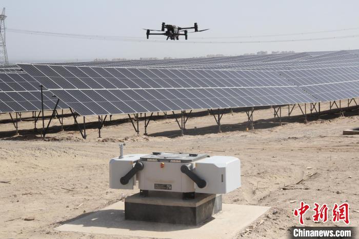 圖為5日,大唐第十四師昆玉市100萬千瓦光伏基地,無人機(jī)正在巡檢光伏組件運(yùn)行情況。馬曉東 攝