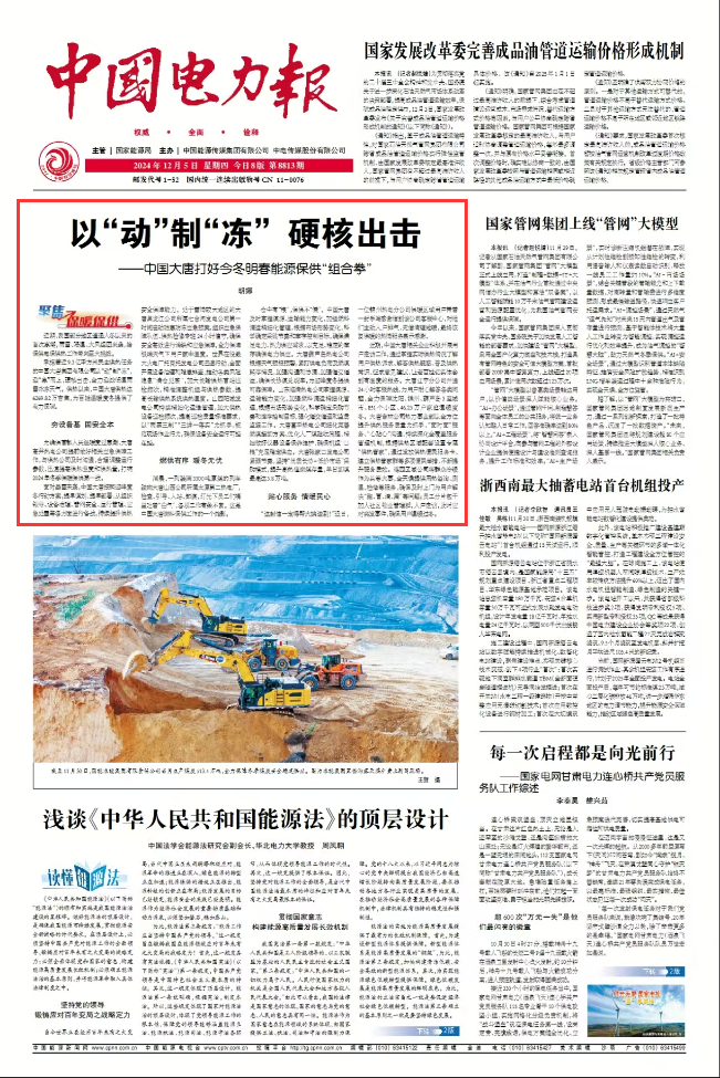 2024年12月5日中國(guó)電力報(bào)第8813期 第一版 頭版