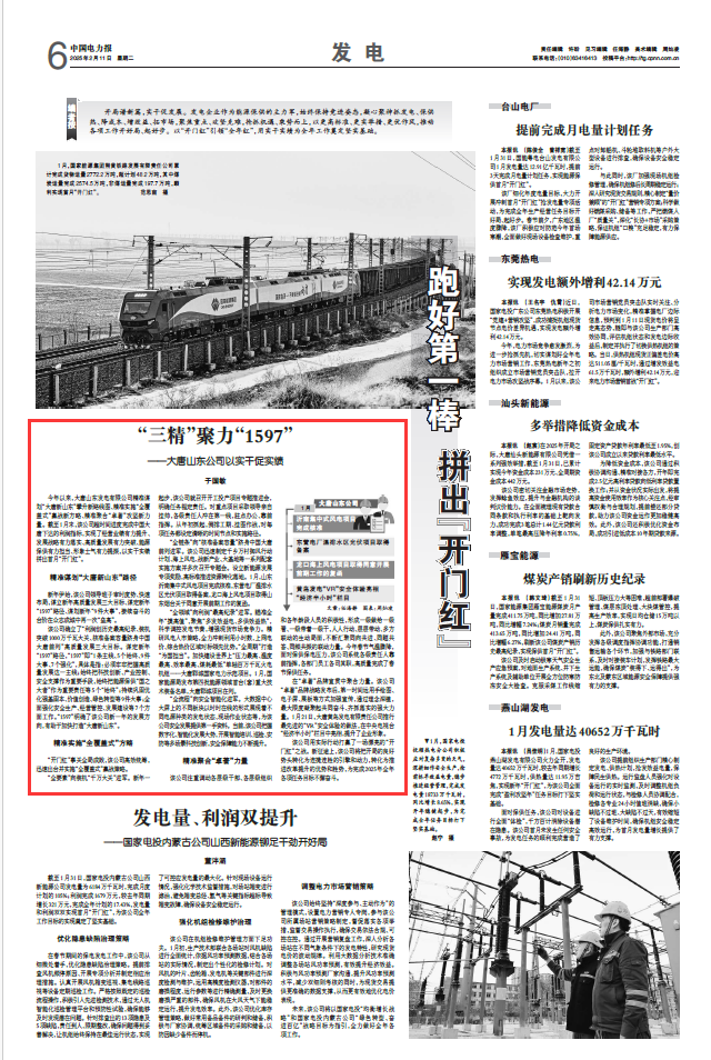 ? ? “全領(lǐng)域”向利潤“最高紀(jì)錄”進(jìn)軍。瞄準(zhǔn)全年“摸高值”,聚焦“多發(fā)效益電、多供效益熱”,科學(xué)調(diào)控發(fā)電節(jié)奏,增強(qiáng)現(xiàn)貨市場競爭力。精研風(fēng)電入市策略,全力沖刺利用小時(shí)數(shù)、上網(wǎng)電價(jià)、綜合熱價(jià)區(qū)域?qū)?biāo)領(lǐng)先優(yōu)勢?!叭芷凇贝蛟臁盀閲鴵?dān)當(dāng)”。加快建設(shè)世界上“壓力最高、溫度最高、效率最高、煤耗最低”單軸百萬千瓦火電機(jī)組——大唐鄆城國家電力示范項(xiàng)目。1月,國家能源局發(fā)布第四批能源領(lǐng)域首臺(套)重大技術(shù)裝備名單,大唐鄆城項(xiàng)目在列。