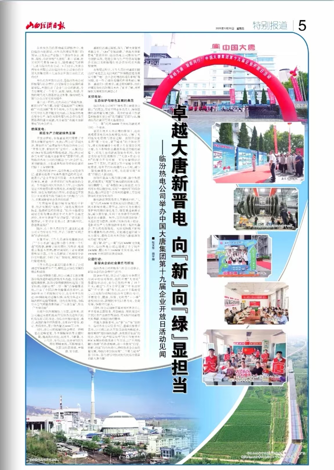 [山西經(jīng)濟日報]2025-09-19-5卓越大唐新晉電 向新向綠顯擔當——臨汾熱電公司舉辦中國大唐集團第十九屆企業(yè)開放日活動見聞