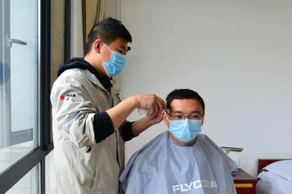 為堅守崗位的職工理發(fā)(付山/攝)