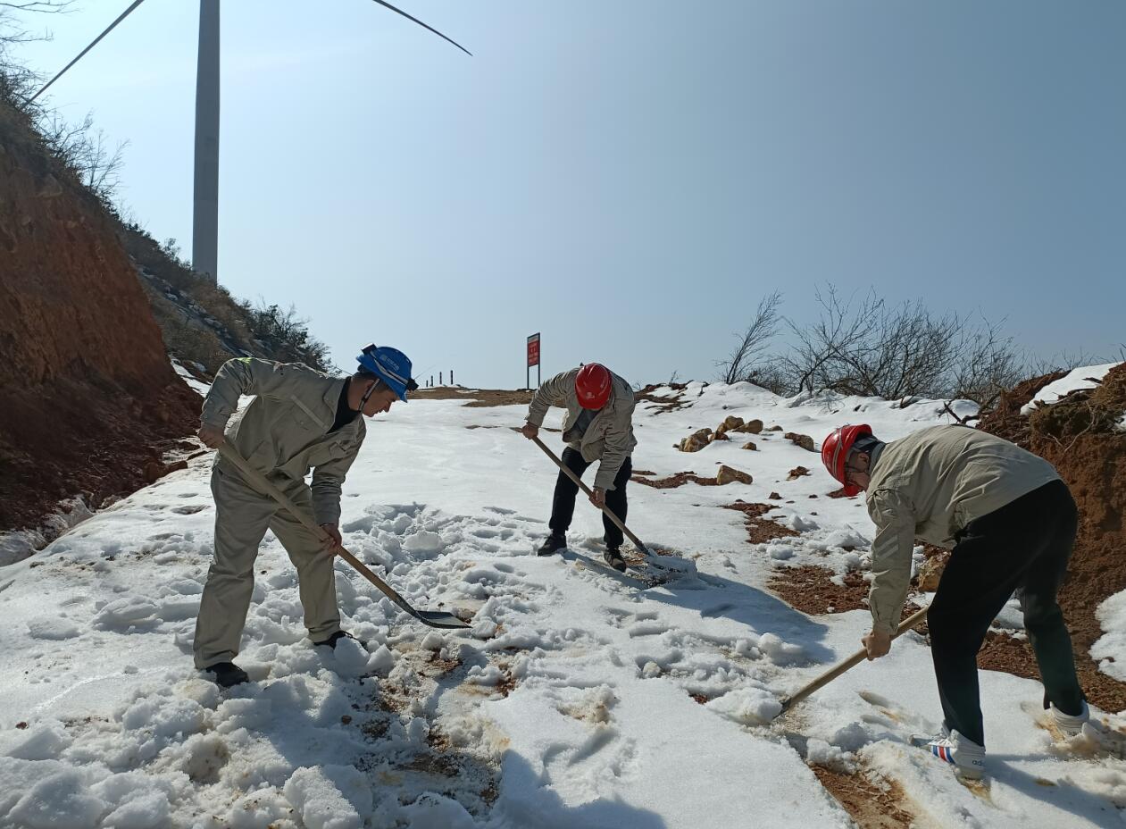 太陽(yáng)山風(fēng)電場(chǎng)職工在山上除雪