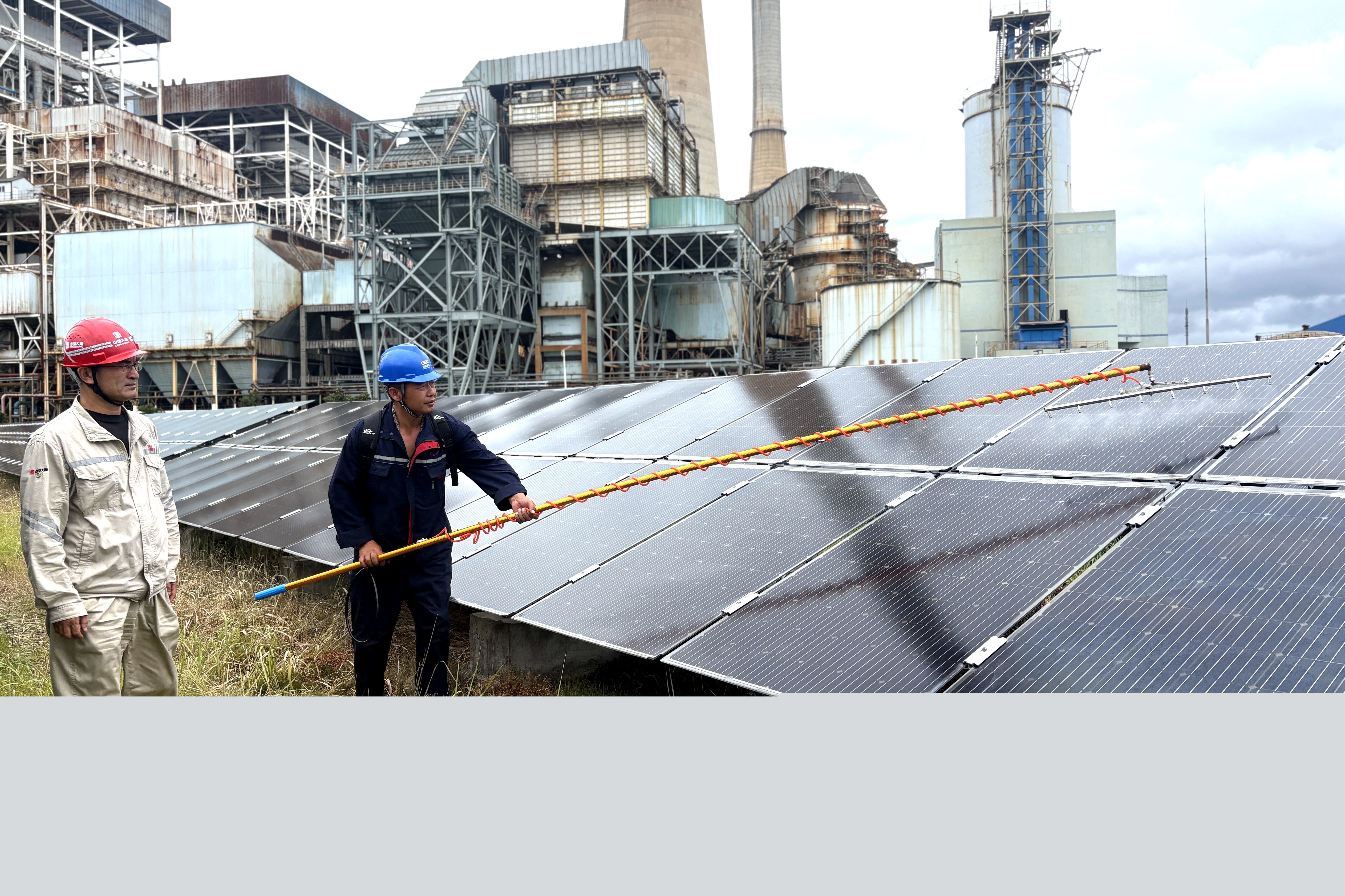 午后的陽(yáng)光潑灑在浙江新能源公司烏沙山廠區(qū)光伏陣列上。光伏板表面,一層晶瑩的鍍膜液正順著傾斜的板面緩緩鋪開,隨著施工人員手持刮板勻速推動(dòng),液體逐漸收束成均勻的膜層。幾分鐘后,隨著最后一縷水漬悄然滑落,原本蒙著層灰翳的光伏板驟然亮了起來(lái),連遠(yuǎn)處的廠區(qū)鍋爐房和近處工作人員的汗珠,都在板面上映得清清楚楚,此次“鍍膜”順利成功。