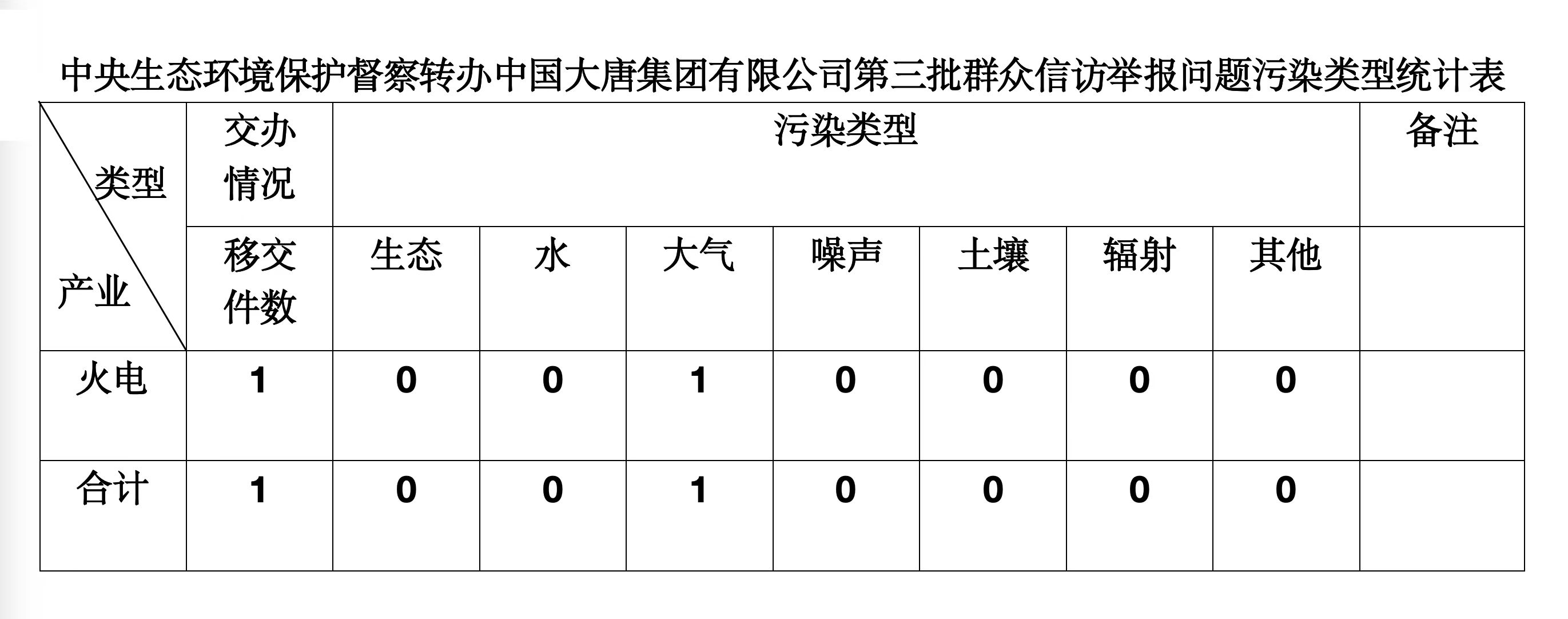 2025年6月5日,中央第七生態(tài)環(huán)境保護(hù)督察組向中國大唐集團(tuán)有限公司移交第三批群眾信訪舉報件,共計1件,為來電舉報,涉及大氣問題1個。所有舉報件辦理工作已第一時間進(jìn)入調(diào)查核實(shí)辦理程序,辦理情況將按照相關(guān)要求反饋督察組,并及時向社會公開。