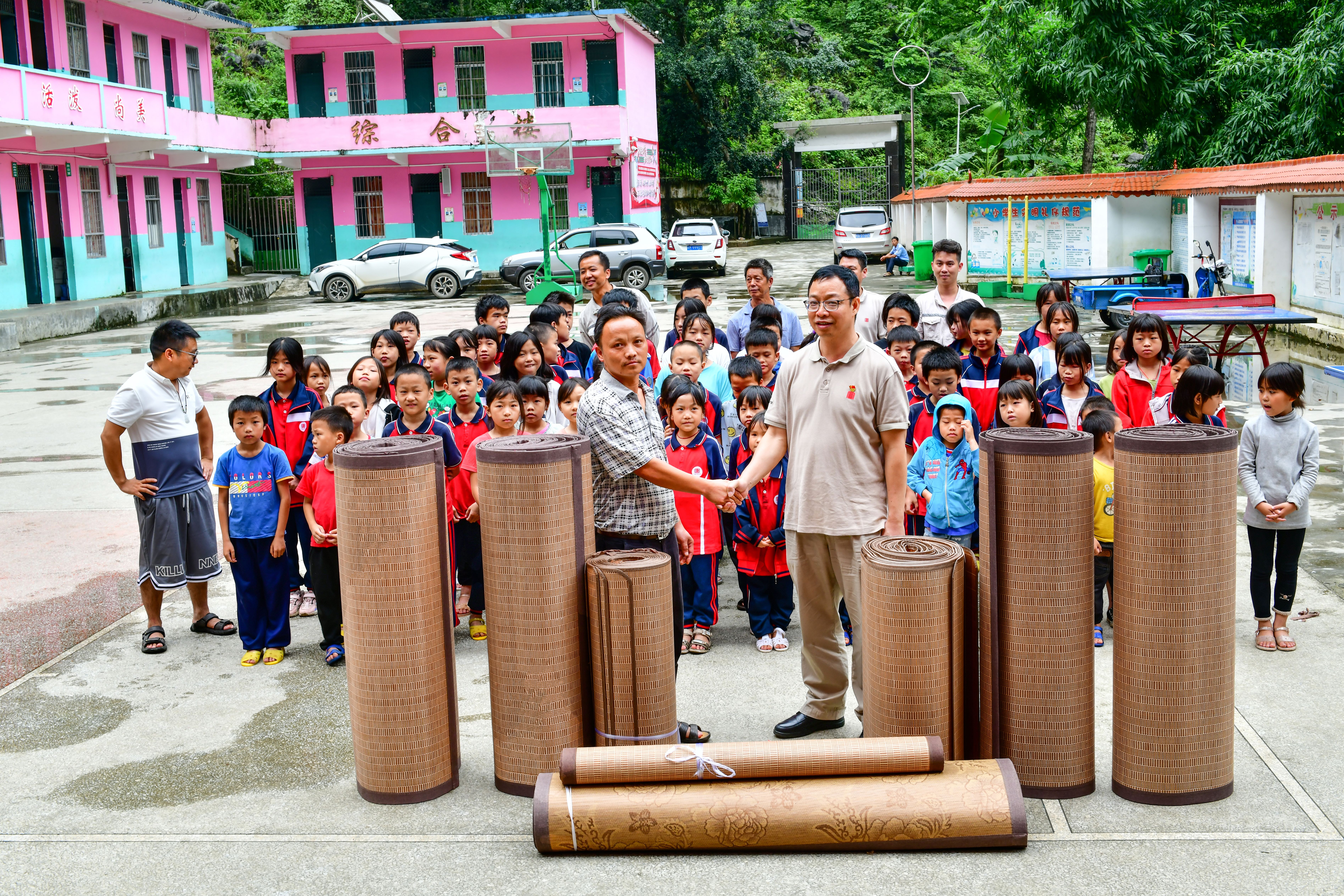 ?????巖灘水電公司贈送安蘭小學(xué)涼席? 謝方明/攝