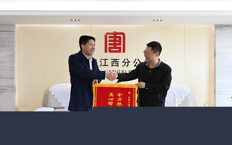 江西分公司不僅給富足村帶來(lái)了一件件看得見、摸得著的物質(zhì)財(cái)富,更是一筆筆豐富的精神食糧。4月13日,贛州市興國(guó)縣委領(lǐng)導(dǎo)一行專程來(lái)到江西分公司本部,將一面印有“全力扶貧不忘初心使命真心幫扶扛起社會(huì)責(zé)任”字樣的錦旗贈(zèng)送給江西分公司,不僅表達(dá)了全體村民的感激之情,更是對(duì)大唐的肯定和贊許。