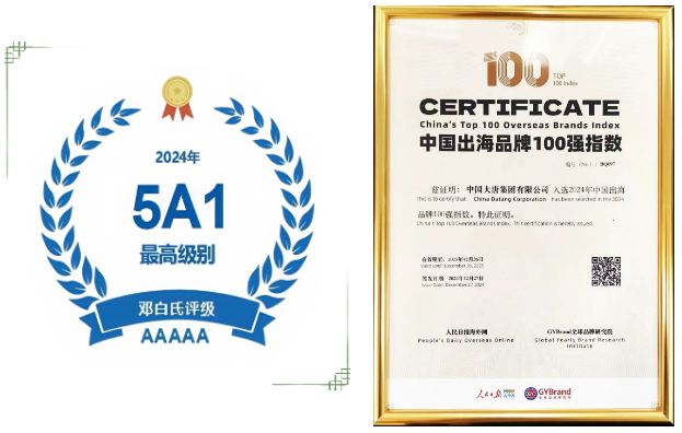 憑借卓越表現(xiàn),大唐海投載譽頗豐。在企業(yè)信用領(lǐng)域,連續(xù)4年獲得鄧白氏權(quán)威評級,2024年更是憑借健全的風(fēng)險管理體系、穩(wěn)定的財務(wù)表現(xiàn)與創(chuàng)新發(fā)展動能,榮膺5A1最高級別,成為行業(yè)信用標(biāo)桿。在品牌影響力維度,成功入選2024年中國出海品牌100強指數(shù),彰顯其在國際市場的強勁競爭力與品牌號召力。
